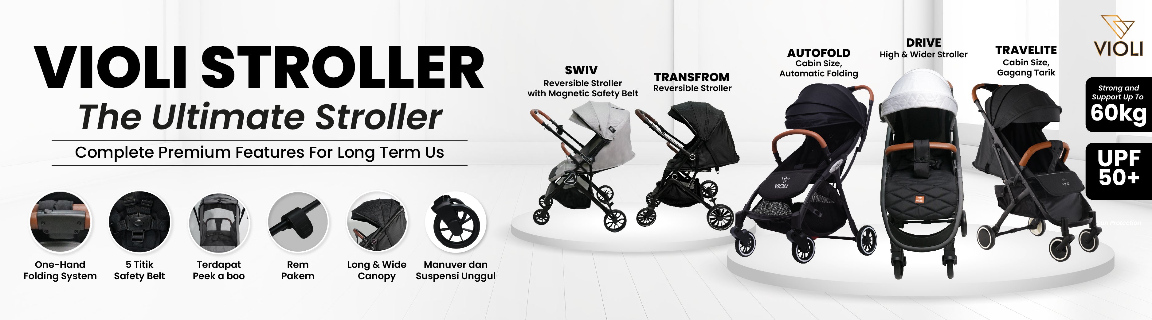 Violi Autofold - Stroller Cabin Bayi Anak Kereta Dorong Ringan Automatic Fold Up To 60kg