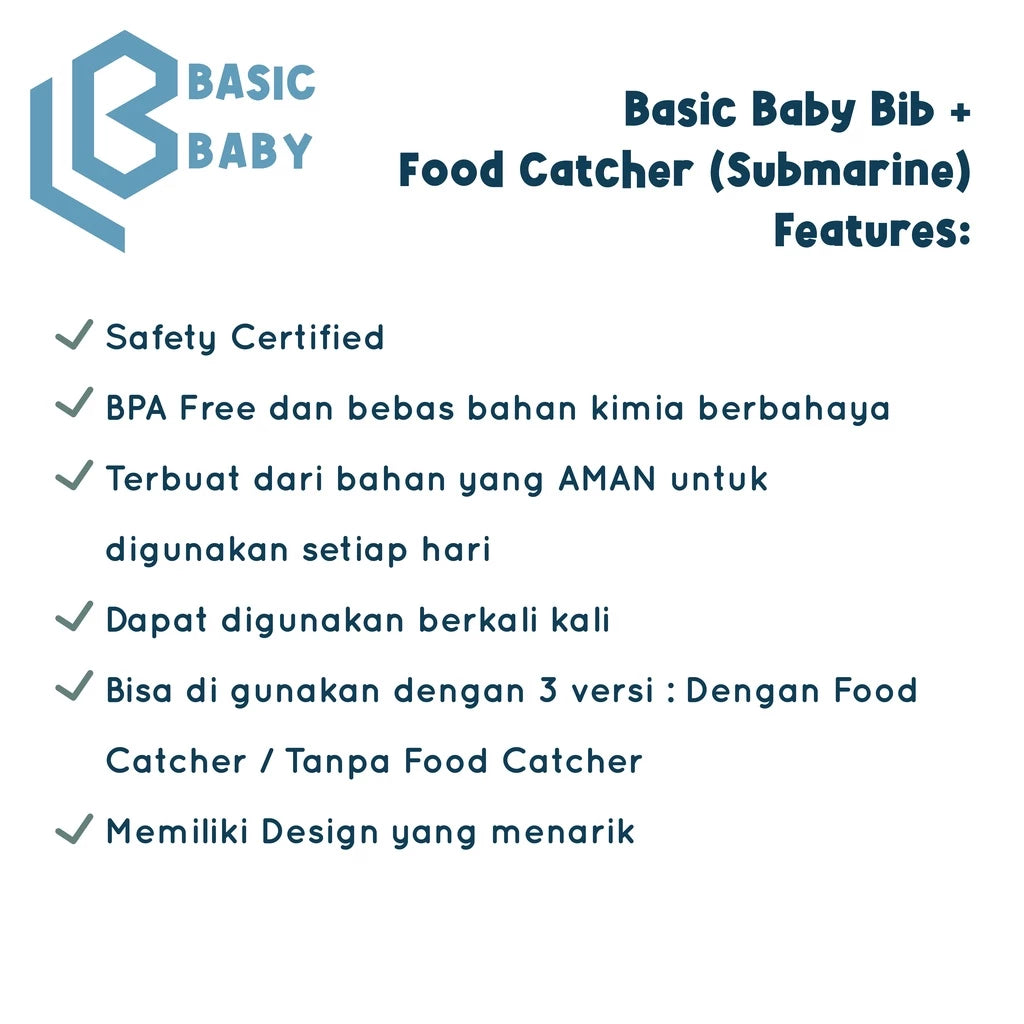 Basic Baby Bib + Food Catcher - Slaber makan bayi