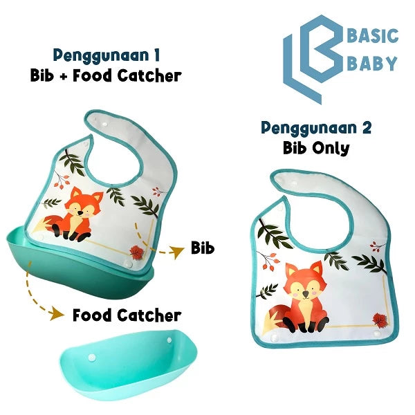 Basic Baby Bib + Silicone Catcher (Bib + Wadah Silicone) – Slaber Bayi Celemek Makan Anak