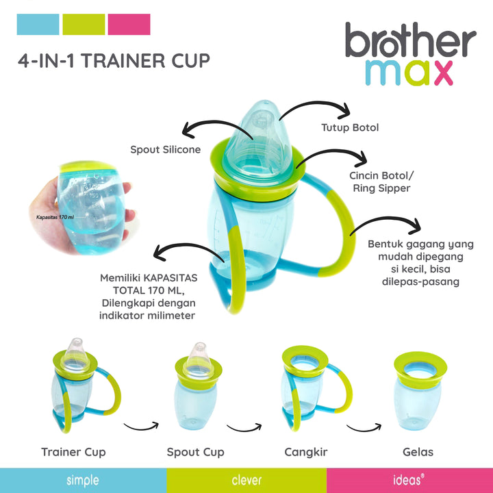 Brother Max 4in1 Trainer Cup – Botol Minum MPASI Anak Multifungsi PP 160ml | Sippy Cup Bayi | BPA FREE