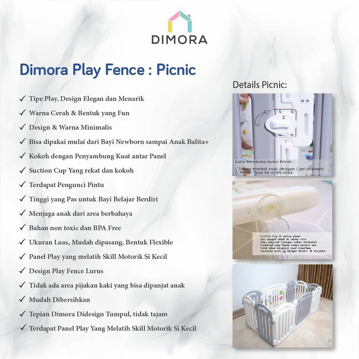 Dimora PICNIC - White & Gray Play Fence Pagar Pembatas Area Main Anak Bayi