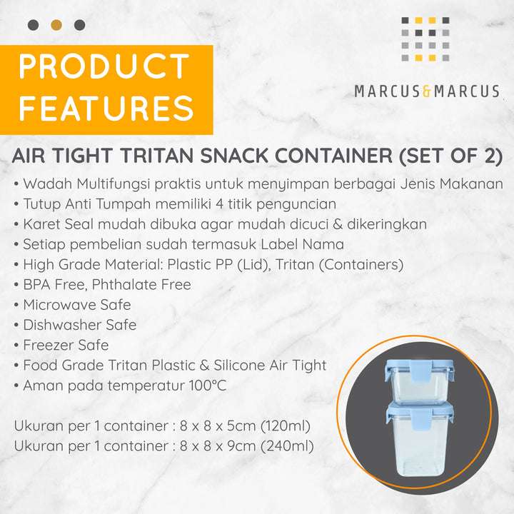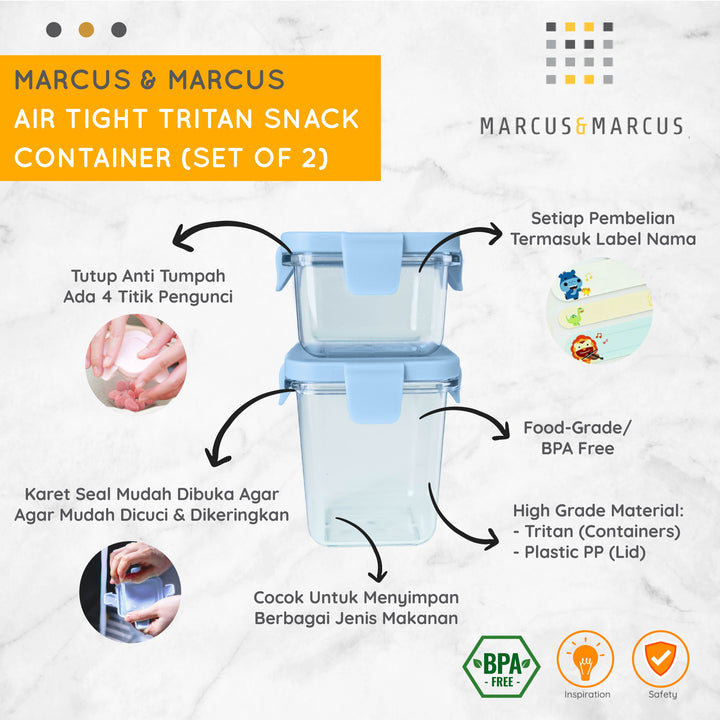 Marcus & Marcus Air Tight Tritan Snack Container (Set of 2) - Wadah Penyimpanan MPASI Snack