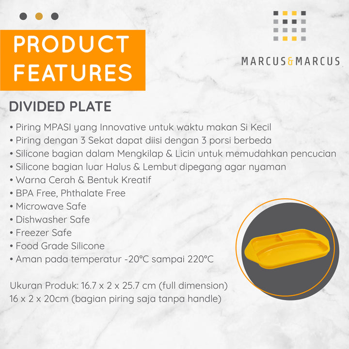 Marcus & Marcus Divided Plate - Piring MPASI Anak Sekat Silikon