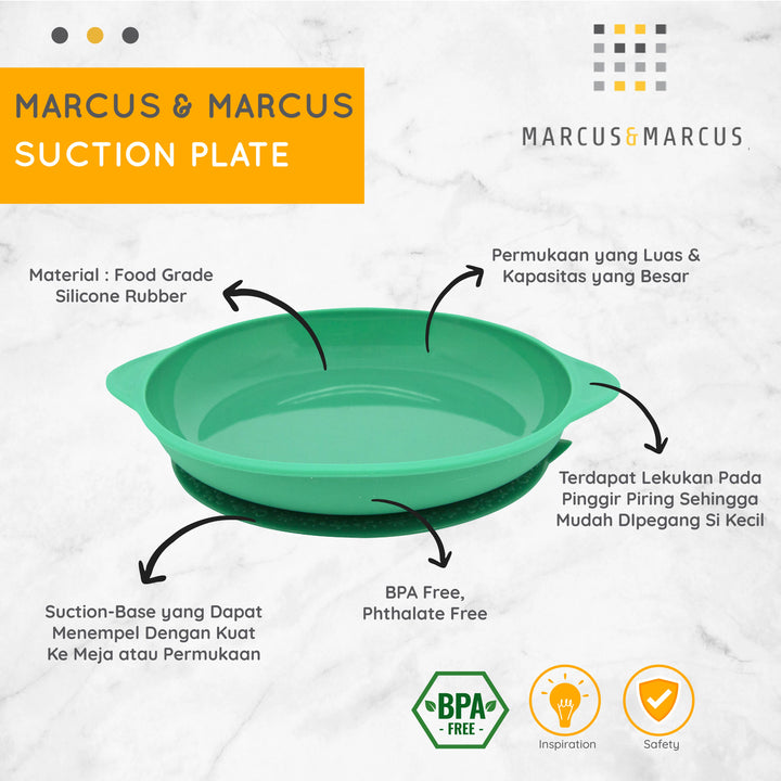 Marcus & Marcus Suction Plate - Piring Makan MPASI Anak Bayi Suction Silikon Anti Tumpah | BPA FREE