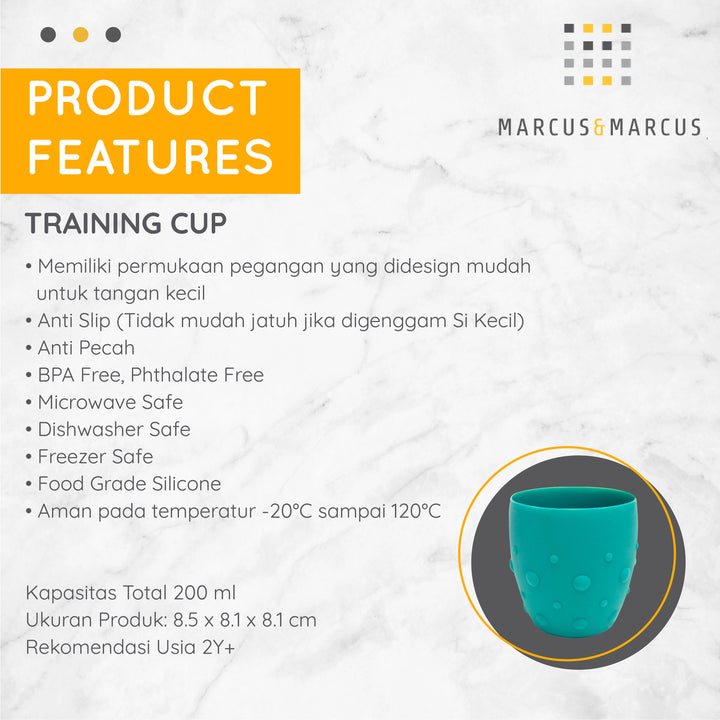 Marcus & Marcus Training Cup - Gelas Minum MPASI Silikon Anak Gelas Sikat Gigi | BPA FREE