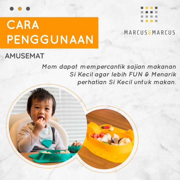 Marcus & Marcus Creativplate With Suction - Piring Karakter Anak Bayi Sekat Makan MPASI Suction Silikon Sekat Tiga Anti Tumpah | BPA FREE