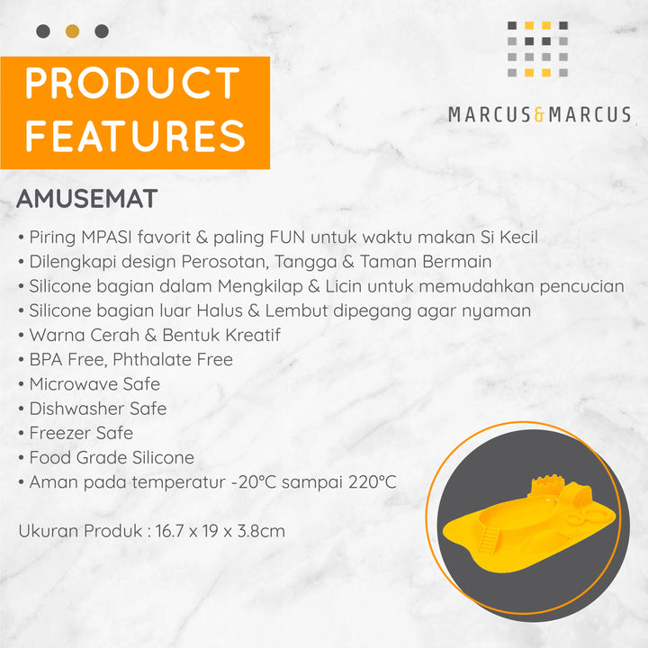 Marcus & Marcus Amusemat - Piring Karakter Anak MPASI Sekat Silikon