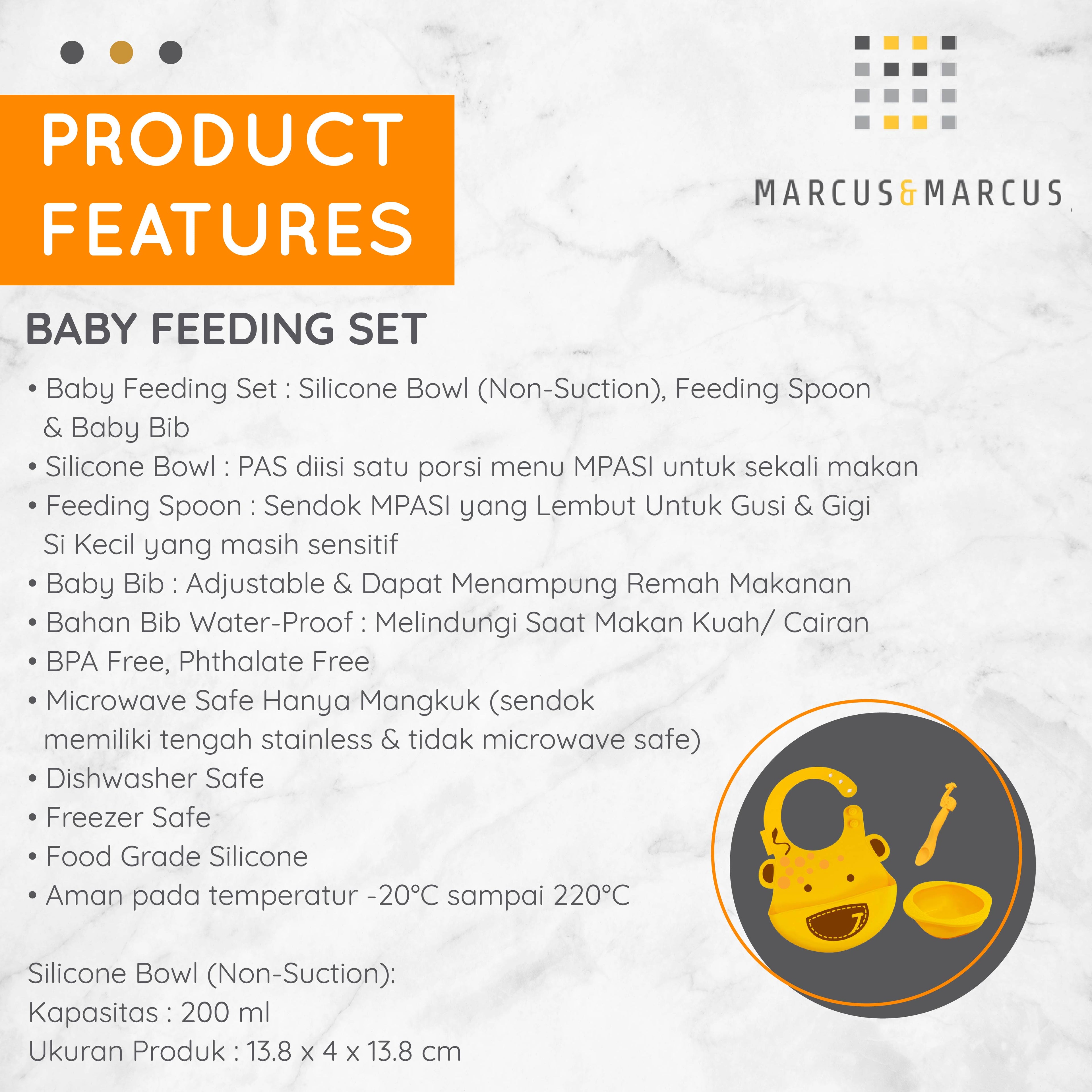 - Design unik Marcus&Marcus memiliki fitur-fitur untuk mendorong anak mandiri MPASI dan juga mengembangkan skill motorik anak dari usia dini