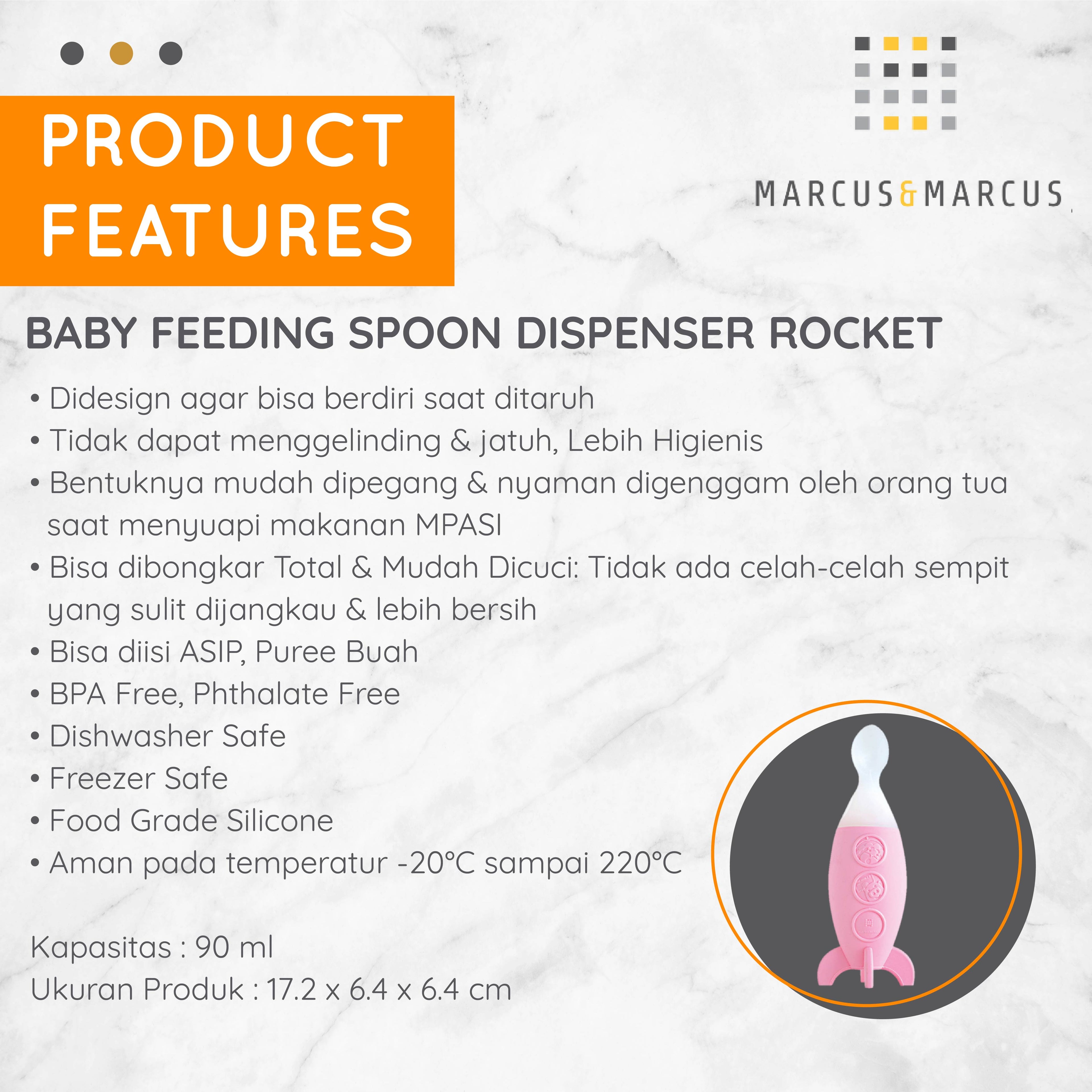 Marcus & Marcus (With Lid) Baby Feeding Spoon Dispenser Rocket – Botol Sendok Makan MPASI Anak Bayi Squeeze Feeder