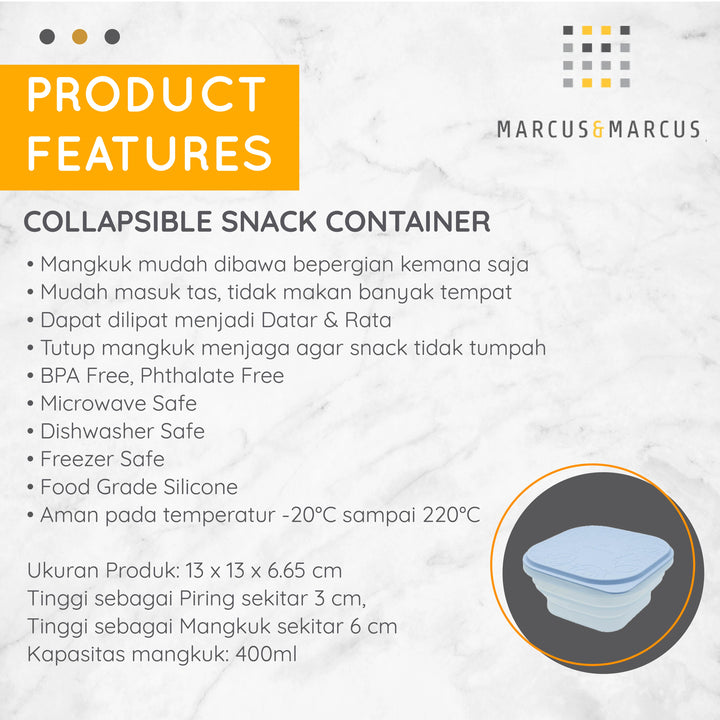 Marcus & Marcus Collapsible Snack Container – Mangkuk Makan Snack Lipat Travel Anak Silikon | BPA FREE