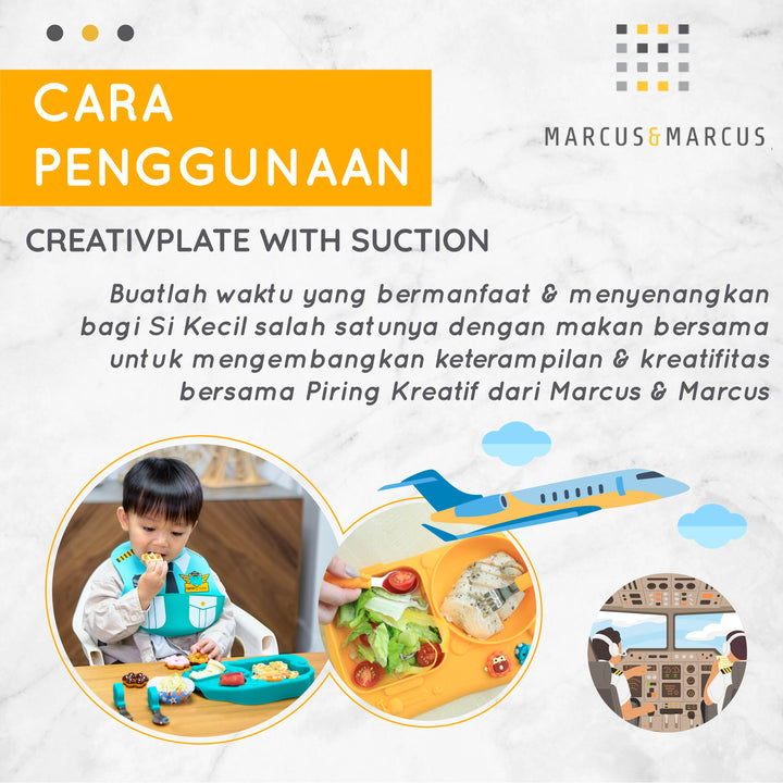 Marcus & Marcus Creativplate With Suction - Piring Karakter Anak Sekat MPASI Suction Silikon Anti Tumpah