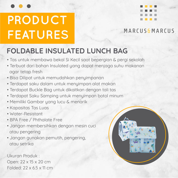Marcus & Marcus Foldable Insulated Lunch Bag - Tas Bekal Anak Lipat Travel Cooler Bag