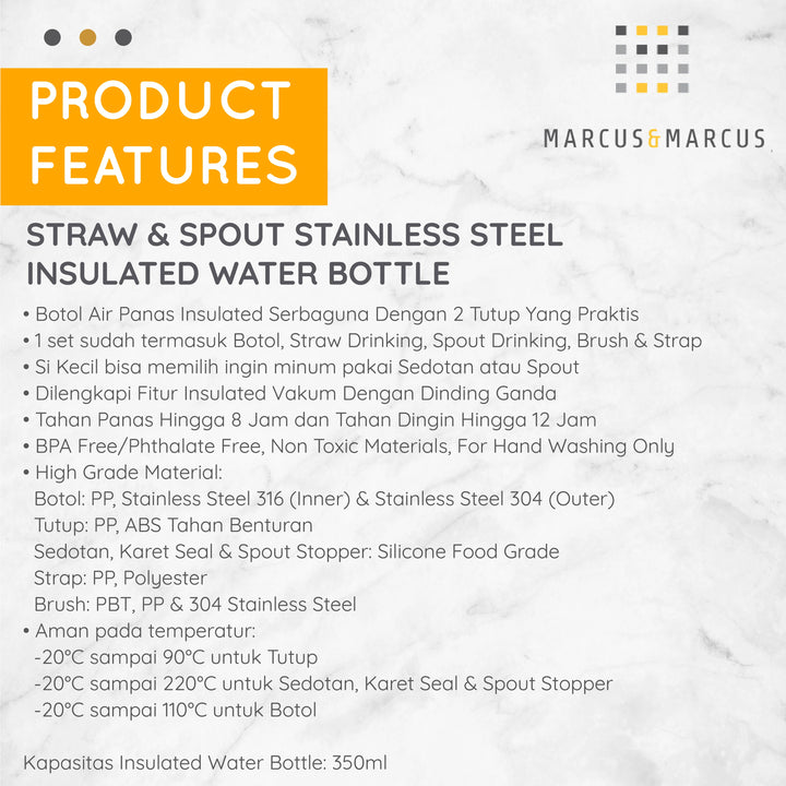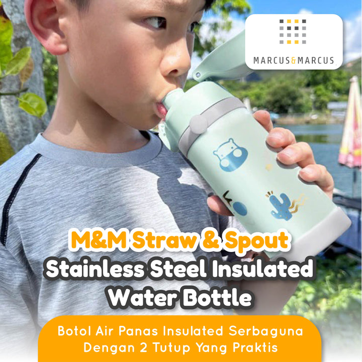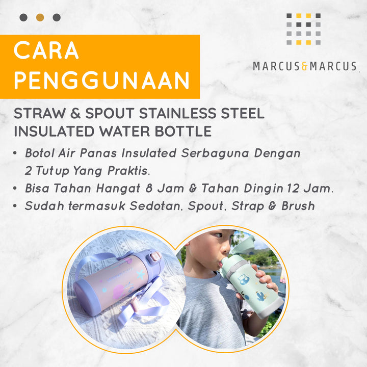 Marcus & Marcus Straw & Spout Stainless Steel Insulated Water Bottle – Tempat Minum Anak Sekolah Stainless Steel 316 | BPA FREE