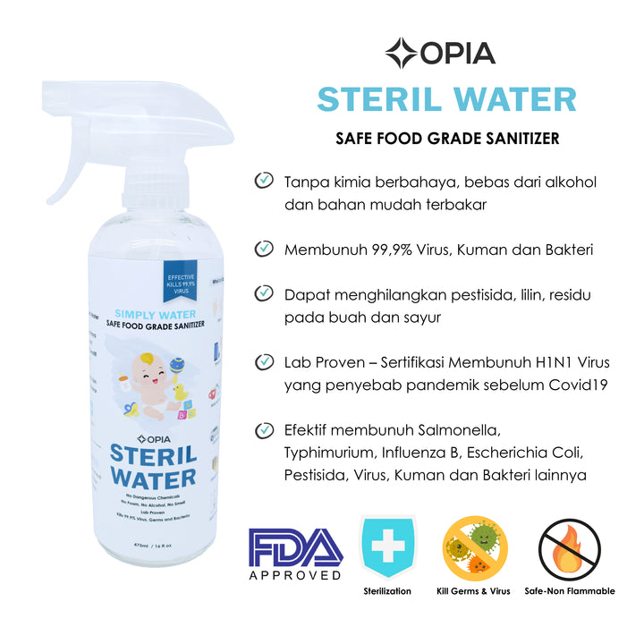 Opia Steril Water & Sanitizer | Waterbased Sanitizer Non Alcohol Chlorine Free Alcohol Free – 475ml (Free 2 Spray Bottle 100ml)