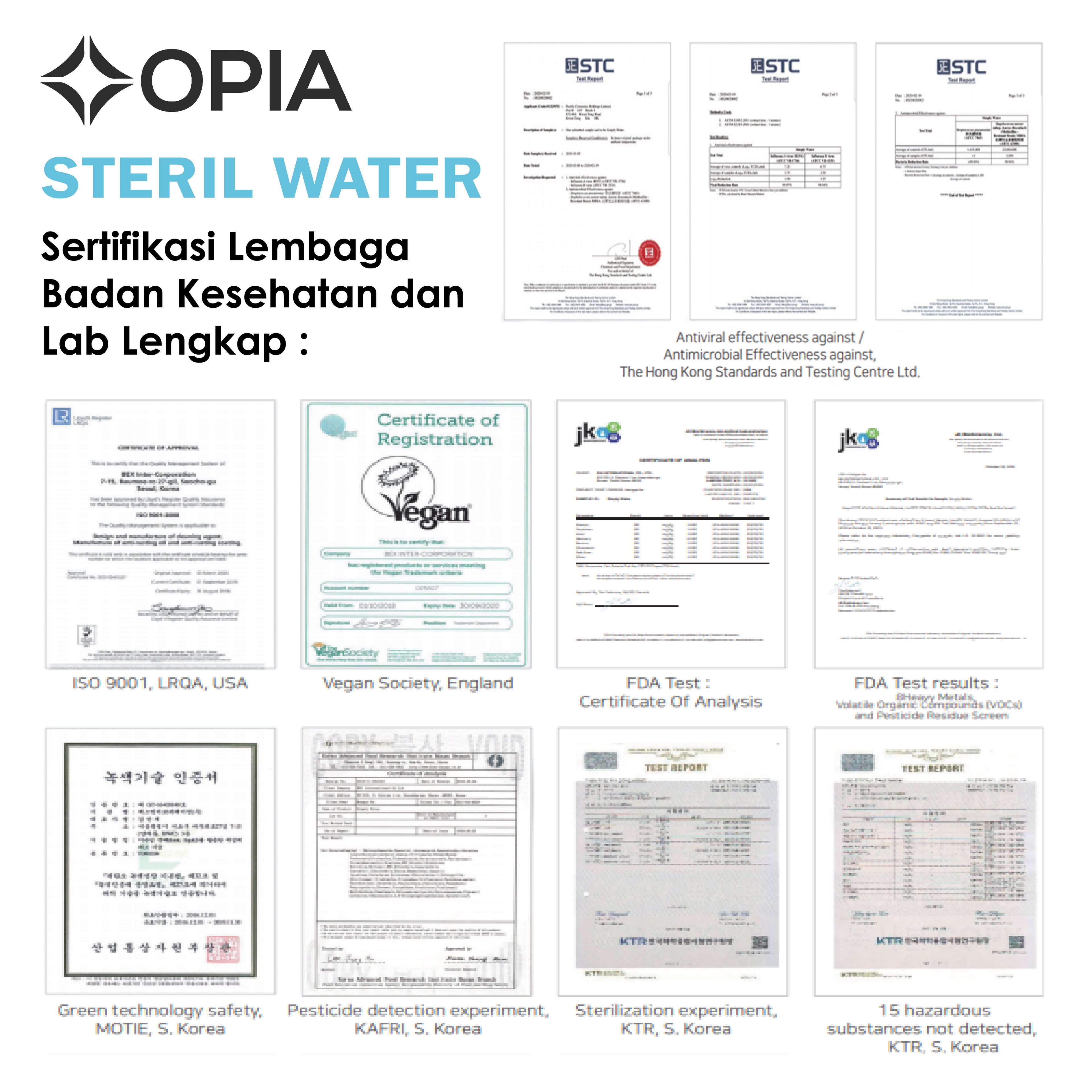 Opia Steril Water adlh sanitizer water based made in Korea, dgn kandungan alami&