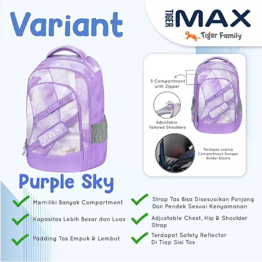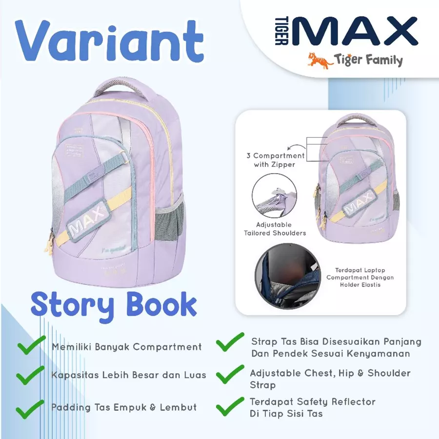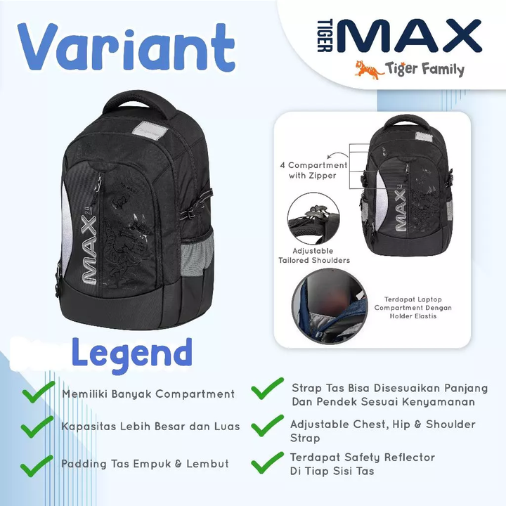 MAX PACK 1.0 : TIGER FAMILY MAX Ergonomic Bag - Backpack Tas Ransel Remaja Untuk Kesehatan | Anti Berat, Bungkuk, Scoliosis