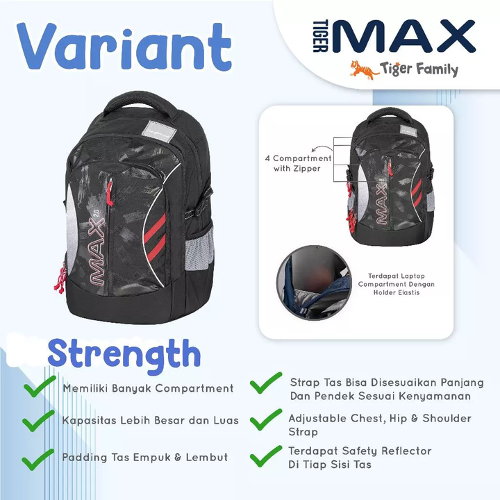 MAX 2.0 : TIGER FAMILY MAX Ergonomic Bag - Backpack Tas Ransel Remaja Dewasa Untuk Kesehatan | Anti Berat, Bungkuk, Scoliosis