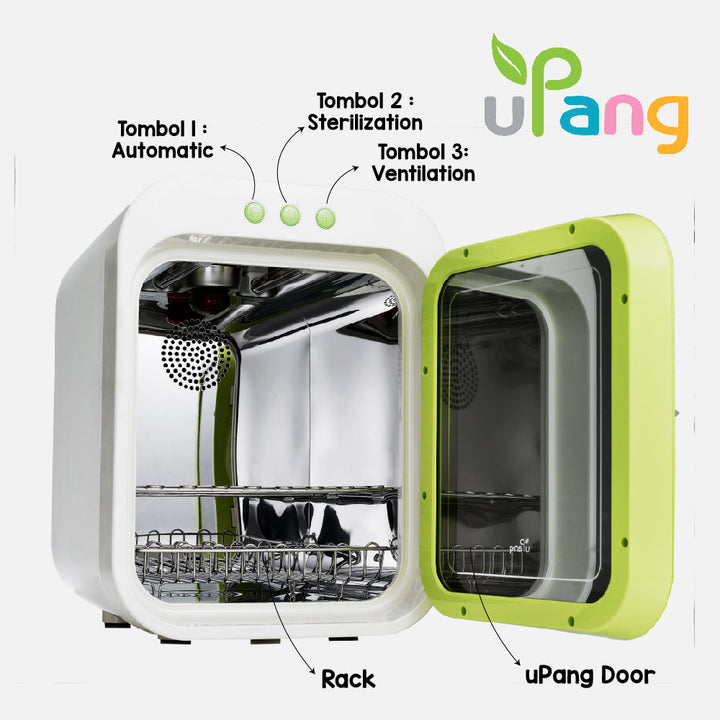 Tidak seperti menggunakan air panas atau mesin sterilisasi uap konvensional, dengan uPang: tidak ada penanganan air panas, maka tidak ada risiko luka bakar, atau risiko cidera dari menumpahkan air panas untuk diri sendiri atau untuk bayi Anda, tidak ada kejadian tumpah/ becek dan risiko tumbuhnya jamur.