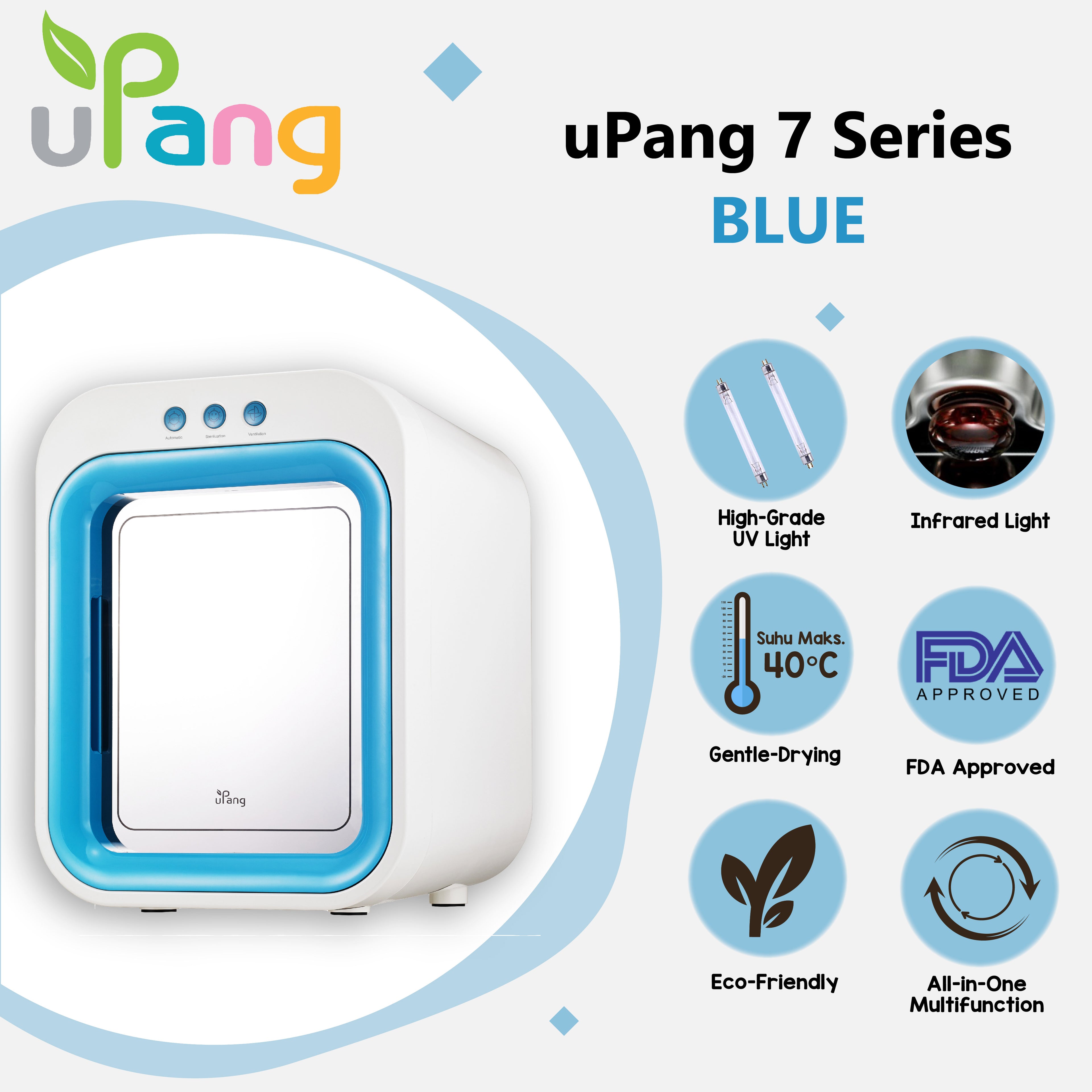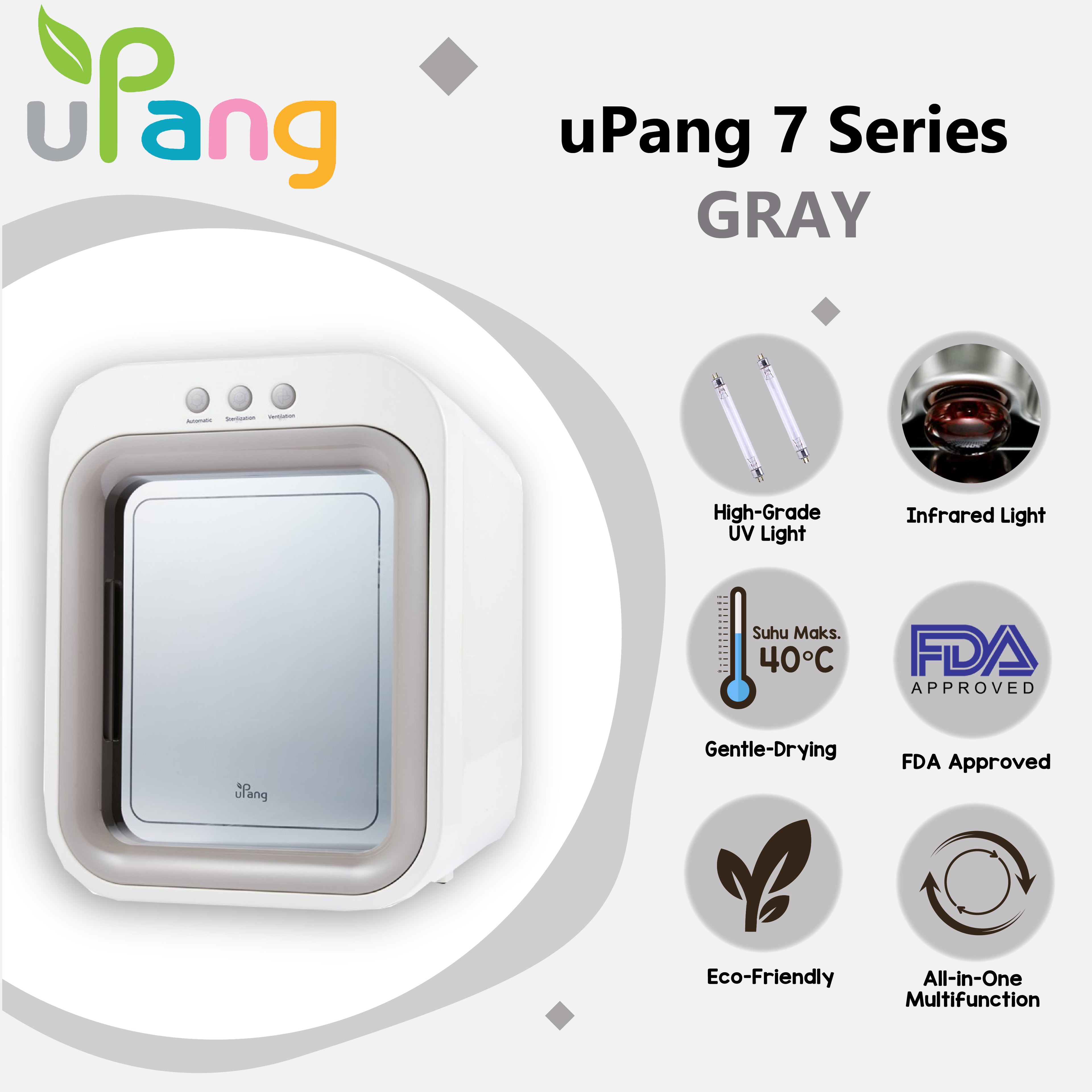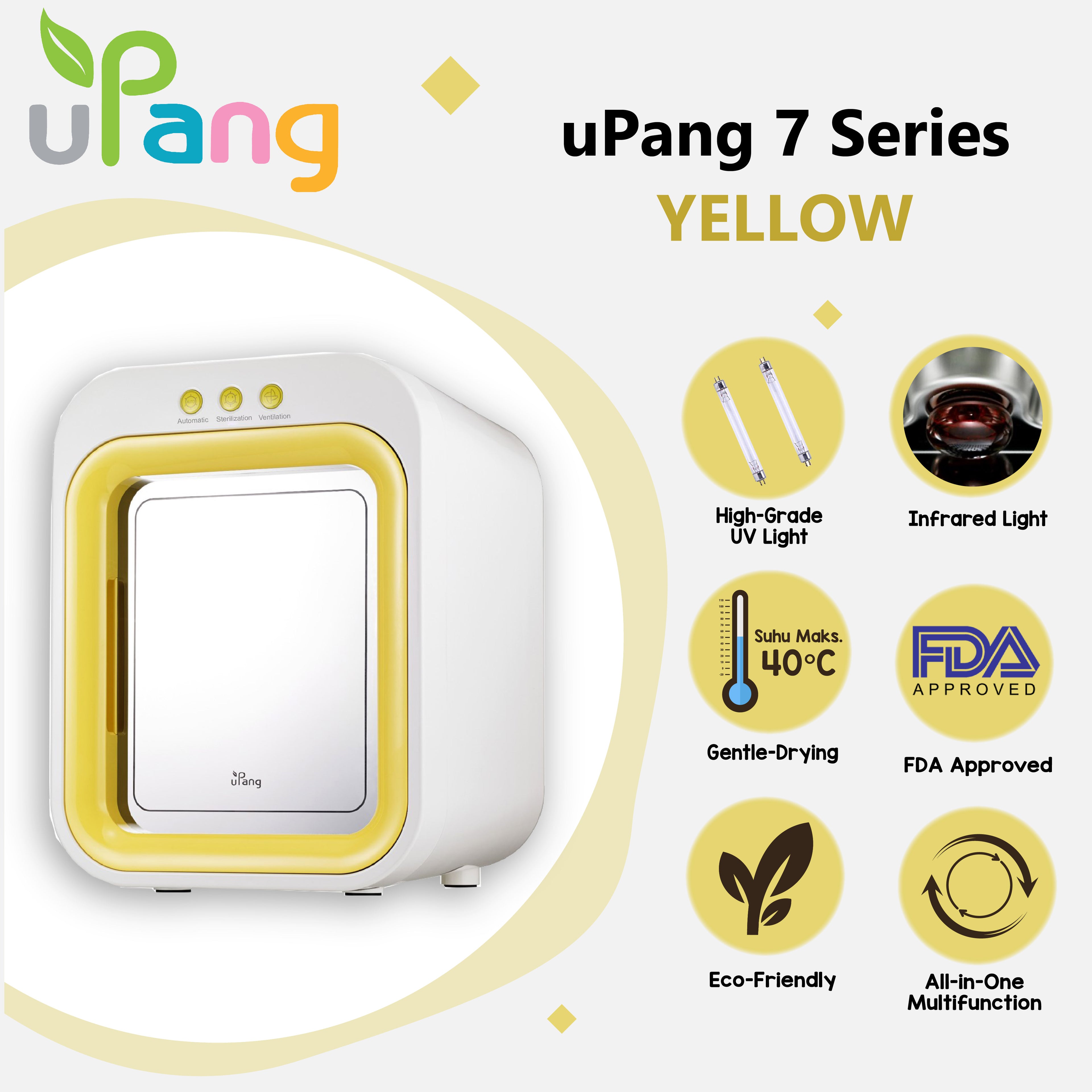 uPang adalah satu-satunya UV Sterilizer di dunia yang telah diuji dan disertifikasi sepenuhnya oleh Food and Drug Administration (FDA dari Amerika Serikat) dan enam organisasi kesehatan Dunia lainnya.