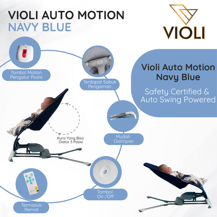Violi – auto : motion navy blue - Bouncer Bayi Ayunan Otomatis Bayi
