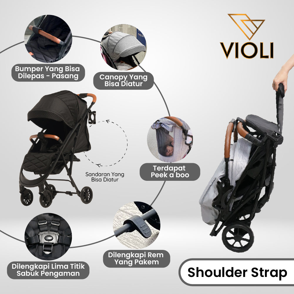 Violi Stroller adalah stroller high quality dengan fitur-fitur lengkap dengan one-hand-handling dan high manoeuvrability.